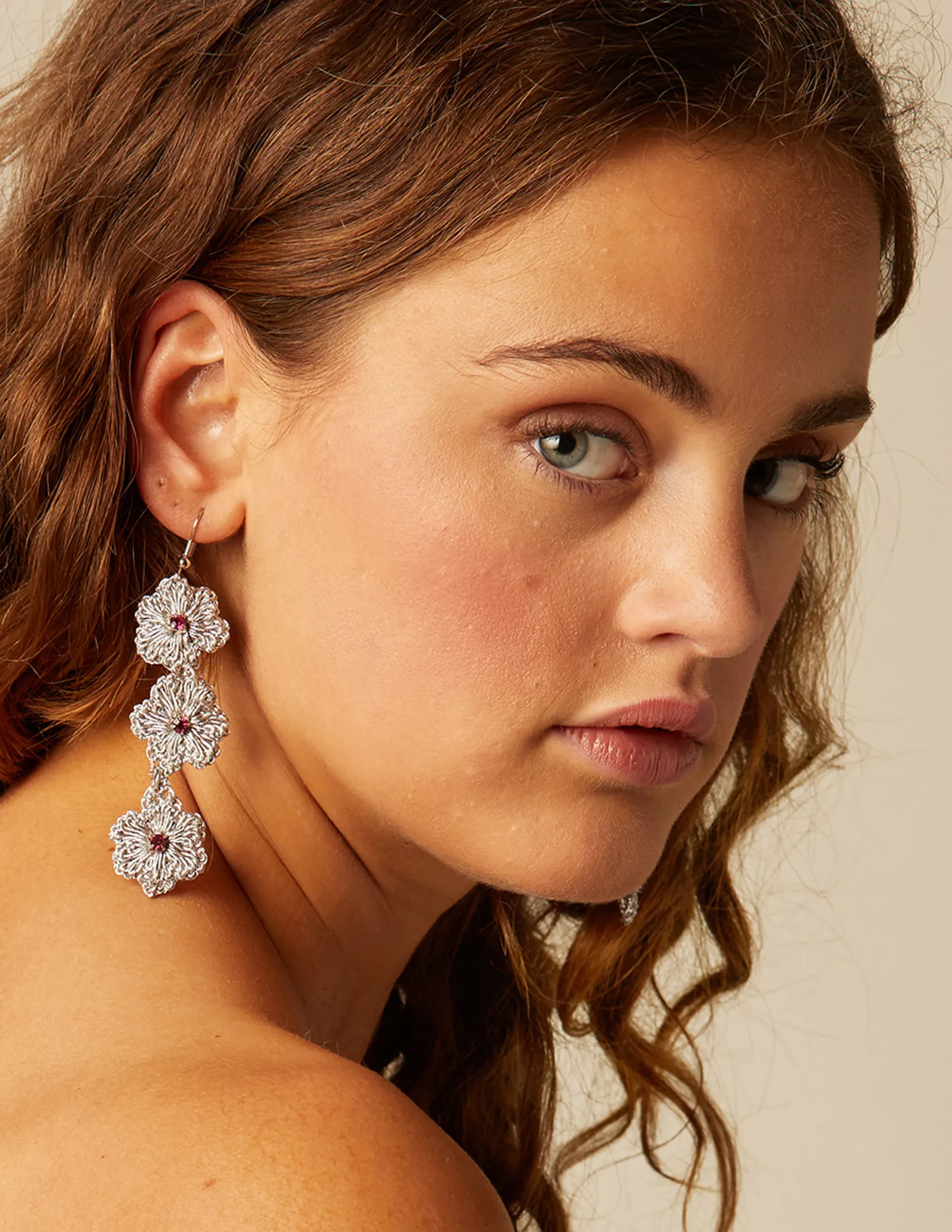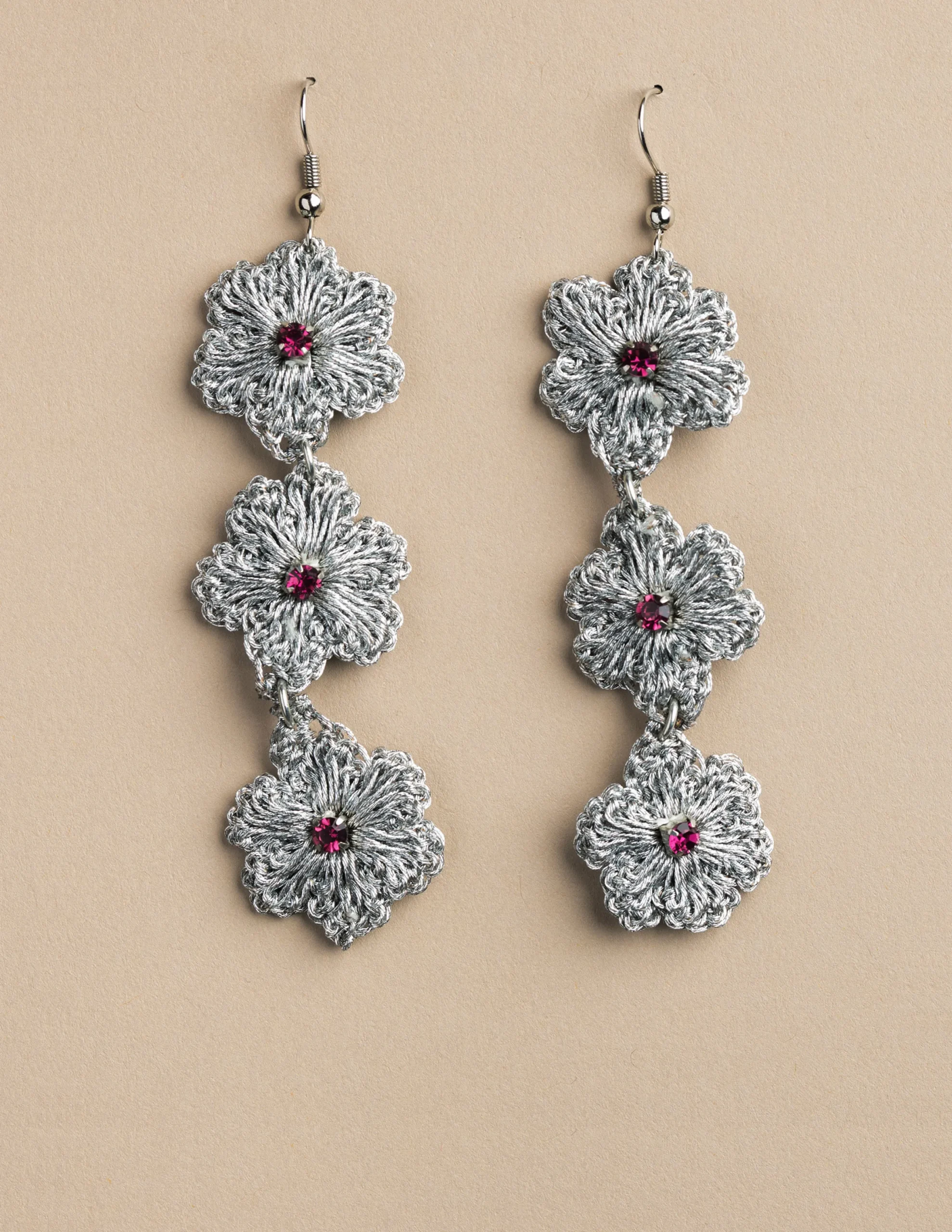 Nicoli Earrings<SILVER CROCHET EARRINGS Metalizados