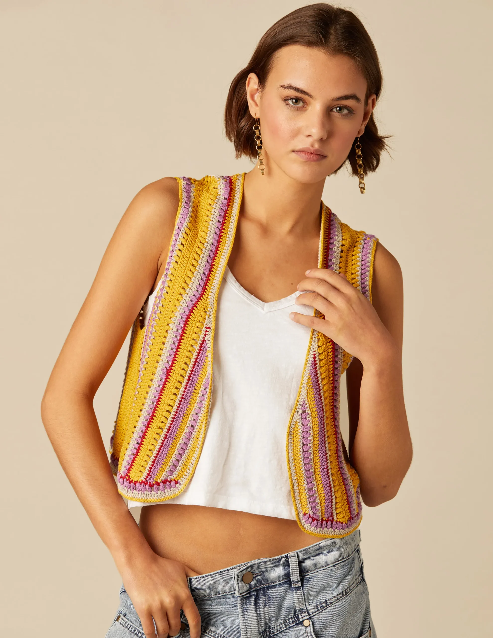 Nicoli Knitwear|Waistcoats<MUSTARD KNIT VEST Azules