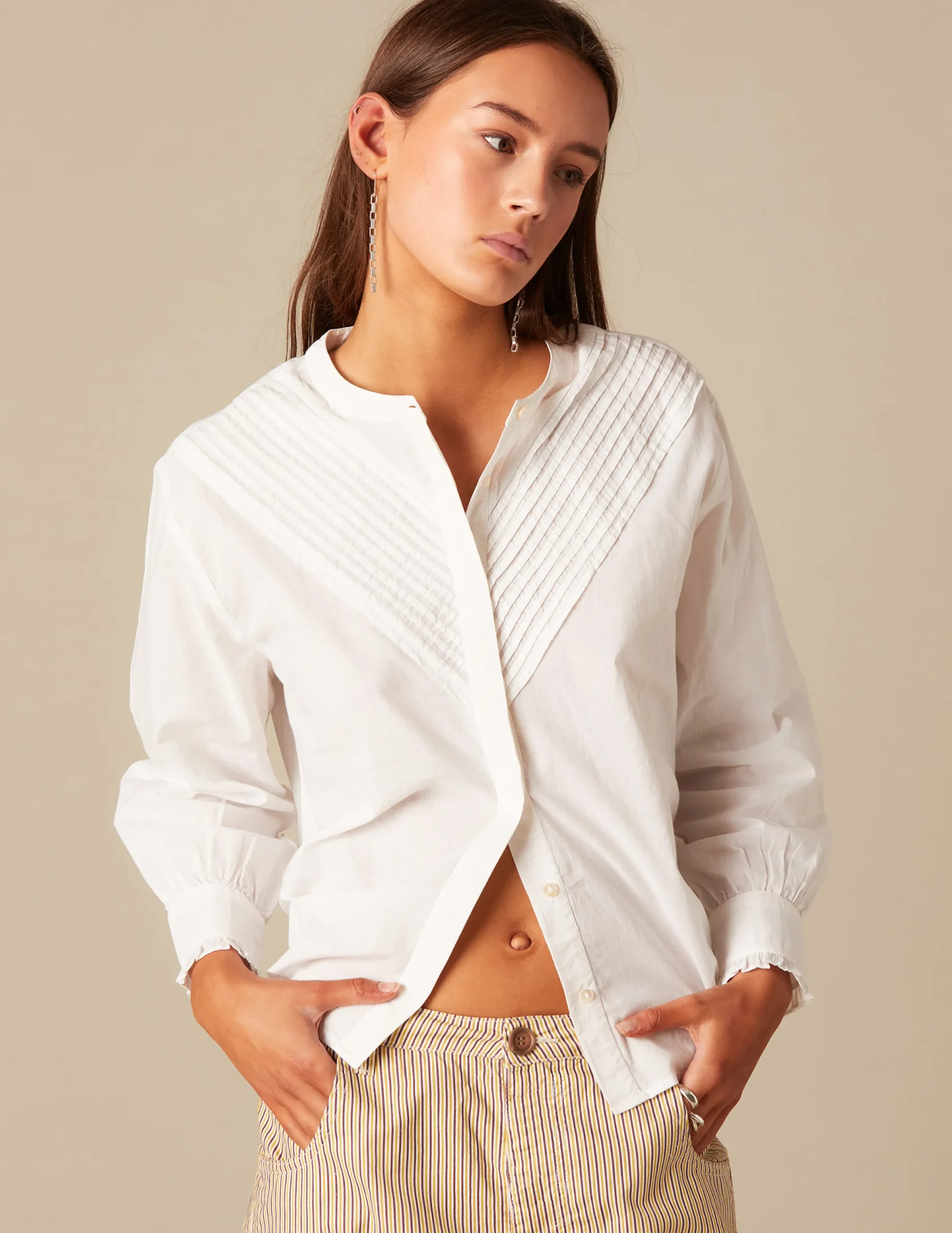Nicoli Shirts & Blouses<WHITE PIN-TUCK SHIRT Azules oscuros
