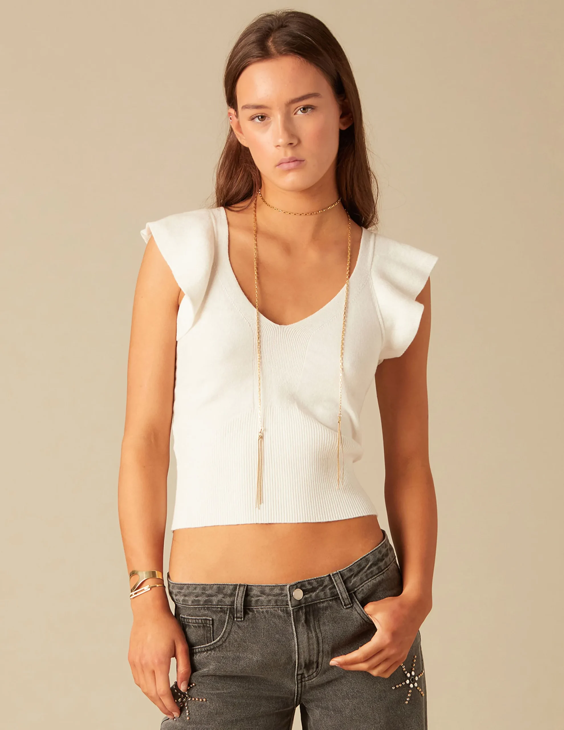 Be the first to review “Nicoli Tops<WHITE RUFFLED SLEEVES TOP Negros” Cancel reply